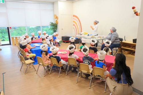 Children engage in the world of a pastry chef by investigating food, ingredients, and preparation processes. Through inquiry based baking experiences, children ask questions about measurement, and presentation while developing independence, cooperation, and pride in their work.
